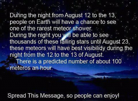 While there IS a meteor shower, it is nowhere near rare- in fact, The California Academy of Sciences says it’s been observed every year for the past, oh, TWO THOUSAND years… so the person behind the image had about as much knowledge of the meteor shower as they do about proper English, but hey- if I hadn’t seen it, I’d have never known about it in the first place! …until next August 12th, when it happens again and someone else makes a lame infograph.