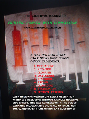 Cash is the possibly the youngest recipient of medical marijuana in the US, possibly the world. The Hydes started secretly giving their son cannabis oil when his second tumor was diagnosed– and his cancer went into remission, when given only a 30% chance of survival to age 5. He made it to 4 and a half. ♥ When the doctors were informed the Hydes had been giving Cashy cannabis oil, they were initially dismayed, but eventually agreed to wean him off of a cocktail of drugs that included methadone, ketamine and morphine he’d been prescribed to deal with the effects of radiation; he went 30 rounds without one nausea or pain medication aside from cannabis. I applaud Cashy’s doctors for their compassion and progressive thinking, as well.